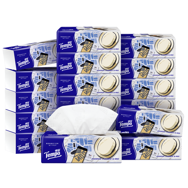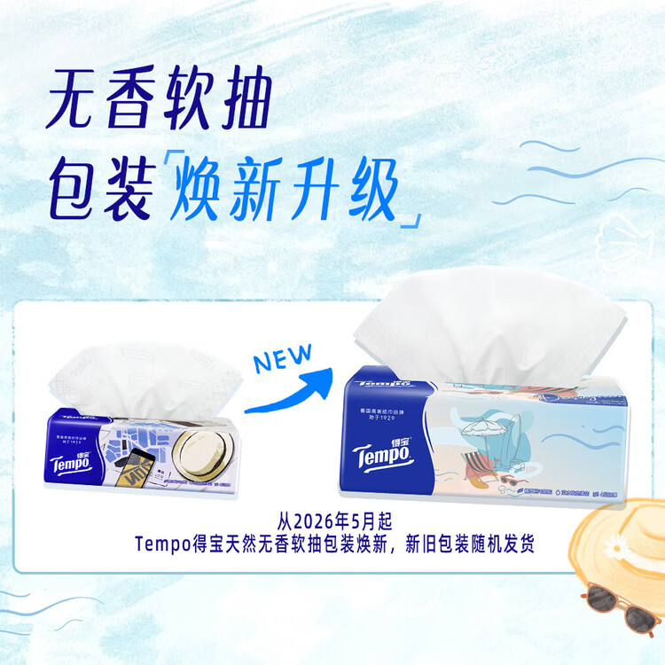 得宝(TEMPO)一博同款 抽纸无香4层100抽*18包M码 新旧包装混发 纸巾卫生纸