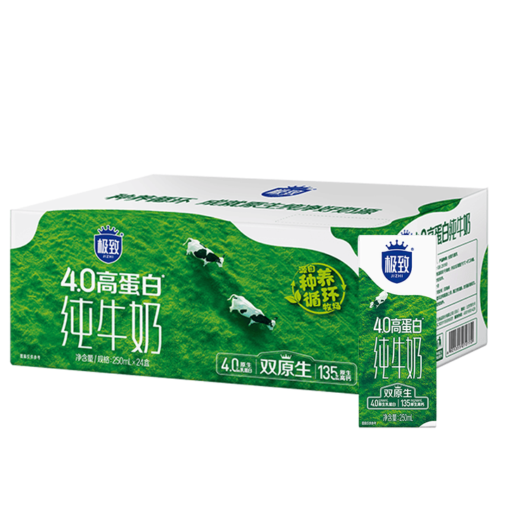 京东直供新 > 水饮冲调 >常温奶 >京东直供 >三元极致4.0g原生高蛋白纯牛奶整箱250ml*24盒 原生高钙 整箱送礼