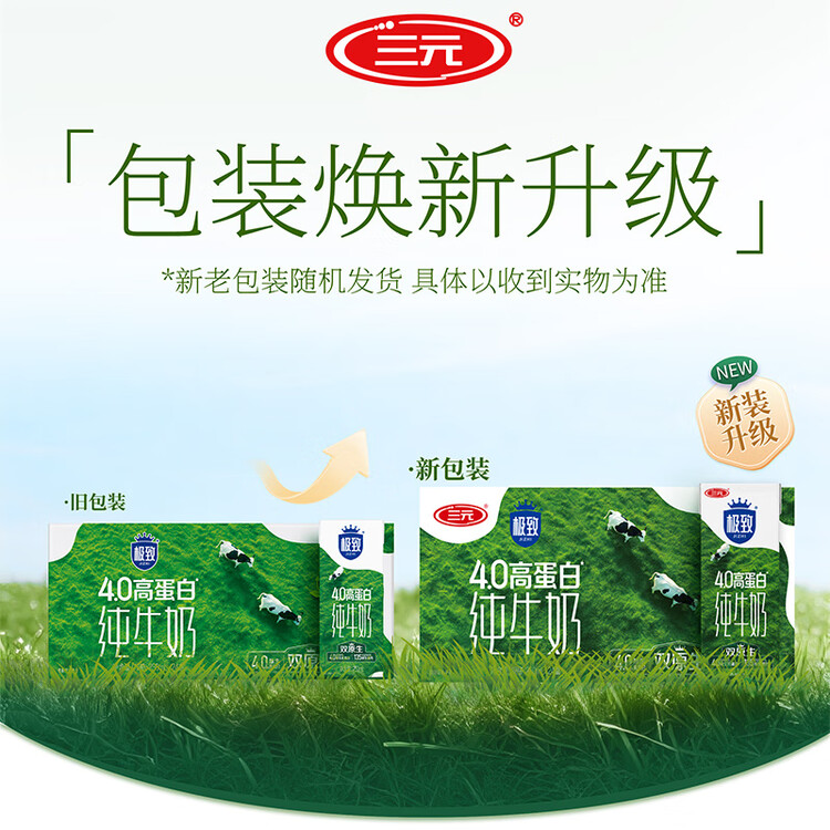 三元极致4.0g原生高蛋白纯牛奶整箱250ml*24盒 原生高钙 整箱送礼