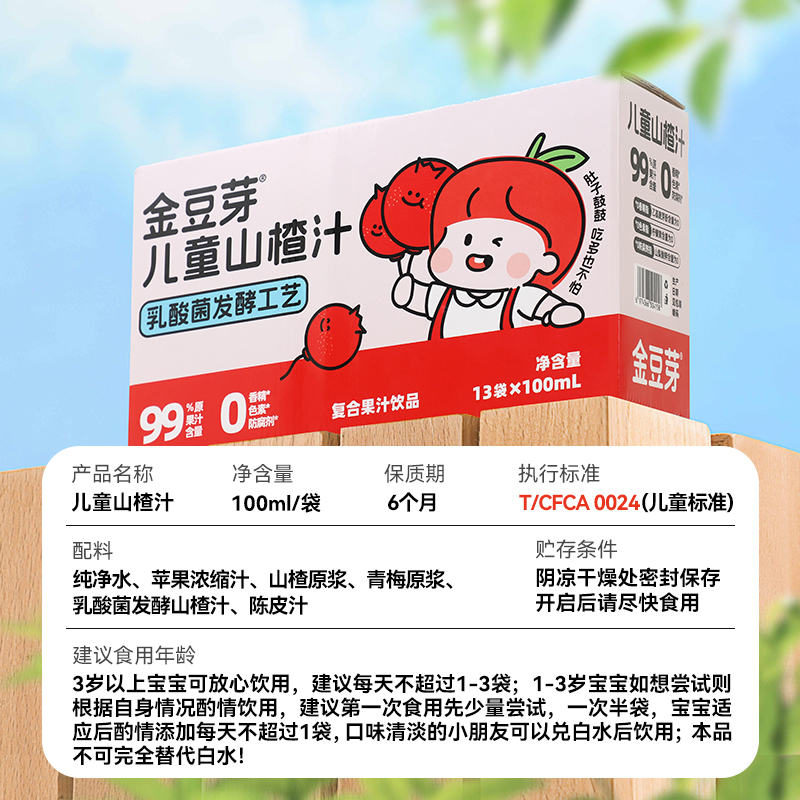 金豆芽儿童山楂汁100ml*13(次日送货)
